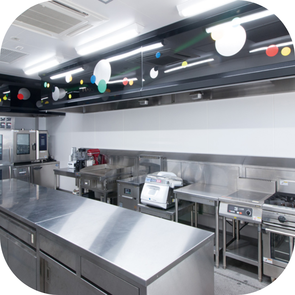 作業時間はこの中で作業を行い、 休憩時間ではこの中で食事を楽しんだり、 会話を楽しんだりすることができます。 広々としたスペースなので、皆と楽しみたい方も、 一人で時間を過ごしたい方もくつろげる スペースとなっております。